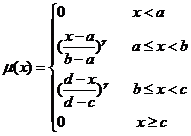 當(dāng)b、c兩點(diǎn)重合時(shí),隸屬函數(shù)蛻變?yōu)橄率?/font>,其形狀如圖7.2(b)所示。